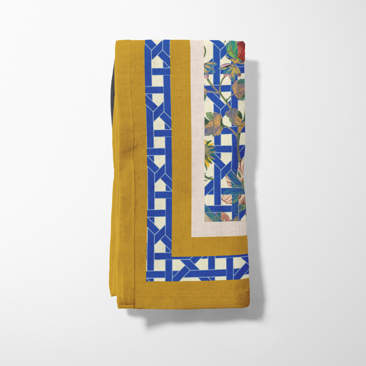 Vintage Flowers under Blue Rattan Napkin
