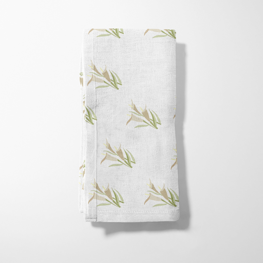 Ecru Dutch Blossoms Napkin in Organic Cotton Voile