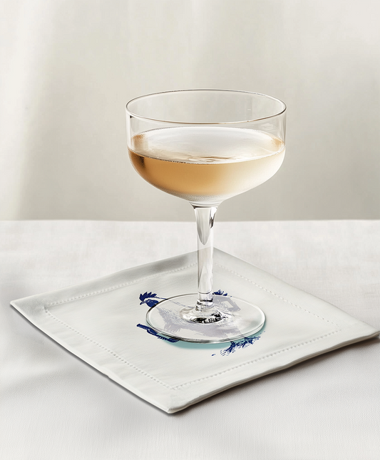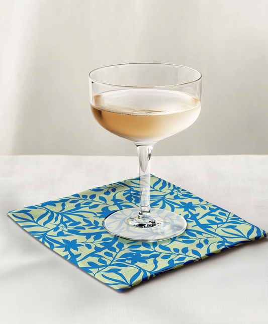 Figi Floral Cocktail Napkin in Cerulean Lime - Lightweight Linen