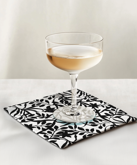Figi Floral Cocktail Napkin in Black and White - Voile - 45%