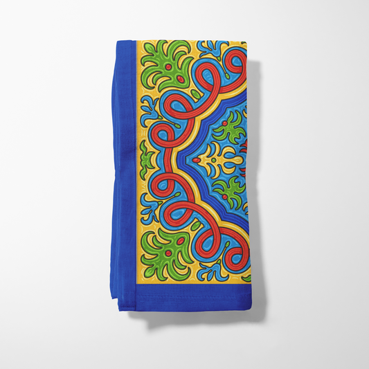 Figi Floral Cocktail Napkin in Cerulean Lime - Organic Cotton Voile
