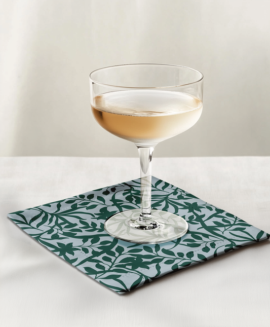 Figi Floral Cocktail Napkin in Icy Adventurine - Organic Cotton Voile - 45%