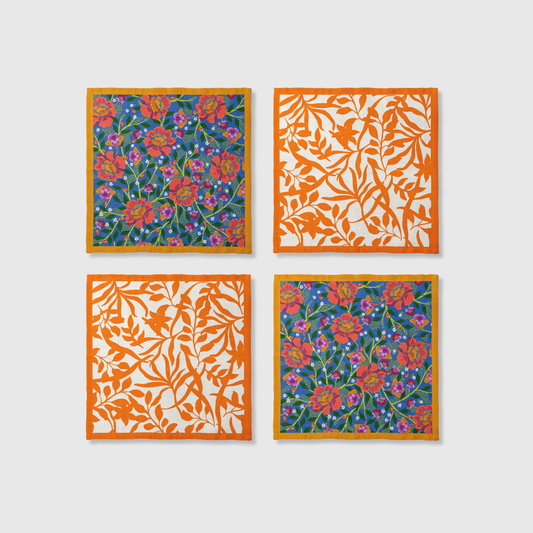 Figi Floral Cocktail Napkin in Cerulean Lime