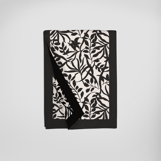 Figi Floral Tea Towel in White and Black - Mid Cotton Twill
