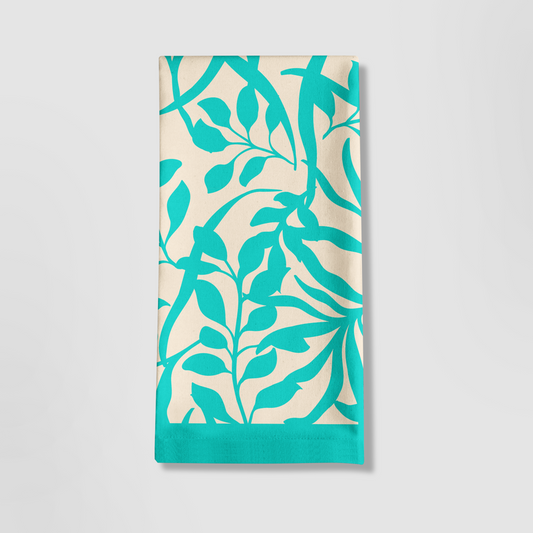 Figi Floral Tea Towel in Blue - Mid Cotton Twill