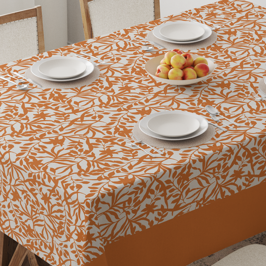 Figi Floral Tablecloth in Orange - Mid Cotton Twill