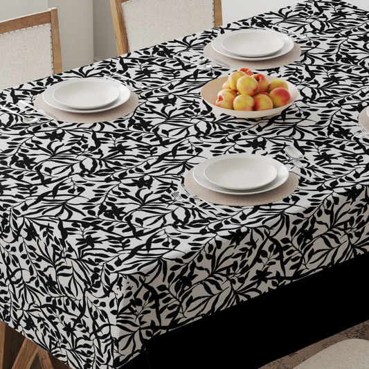 Figi Floral Tablecloth in Black & White - Mid Cotton Twill