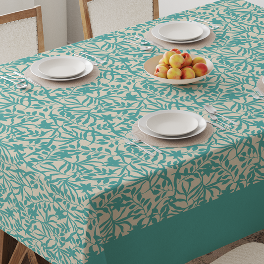 Figi Floral Tablecloth in Aqua - Mid Cotton Twill
