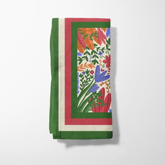 French Floral Cocktail Napkin in Organic Cotton Voile
