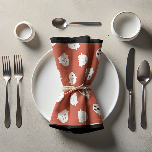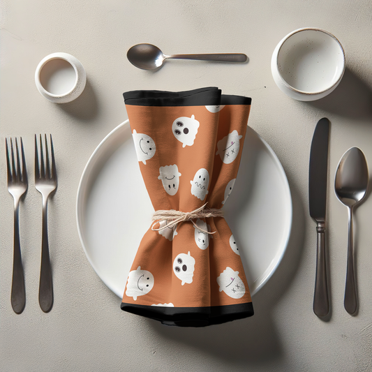 Friendly Ghosts in Pumpkin Napkin in Lightweight Linen