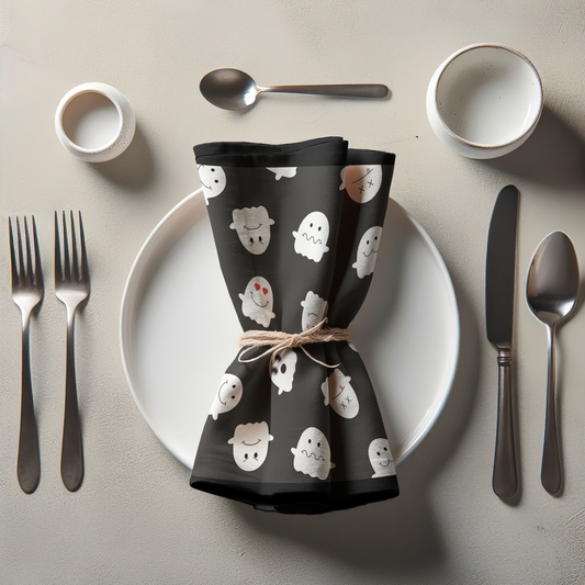Friendly Ghosts in Gravestone Napkin in Organic Cotton Voile