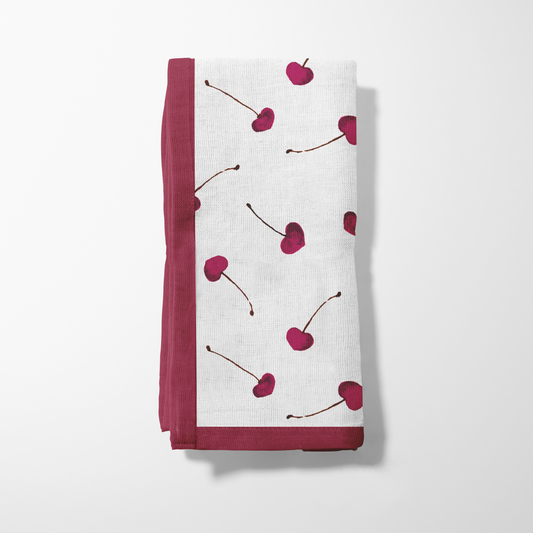 Heart Cherries Napkin in Organic Cotton Voile