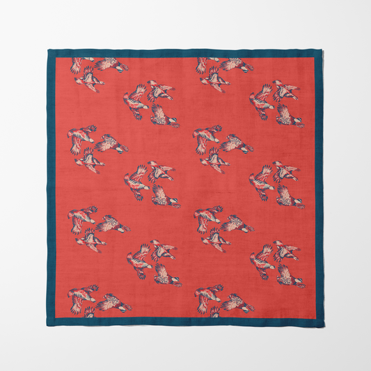 Mallards in Burnt Orange Napkin in Organic Cotton Voile