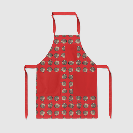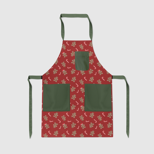 Gingerbread Dudes Full Chef Apron in Dark Red with Dark Green