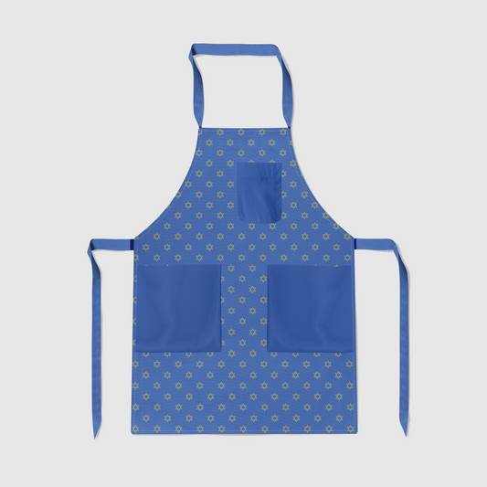 Star of David Full Chef Apron in Blue in Dark Blue and Yellow