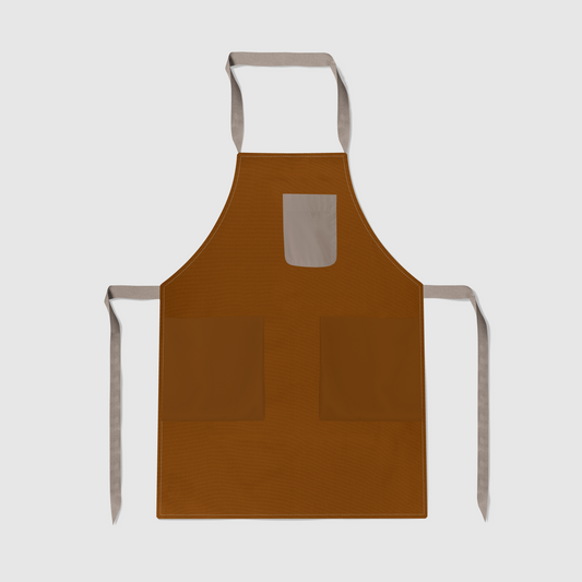 Solid Full Chef Apron in Brown with Tan Pocket in Mid Weight Cotton Twill