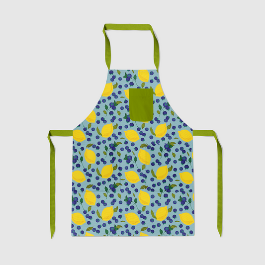 Spring Lemons Full Chef Apron in Aqua in Mid Weight Cotton Twill