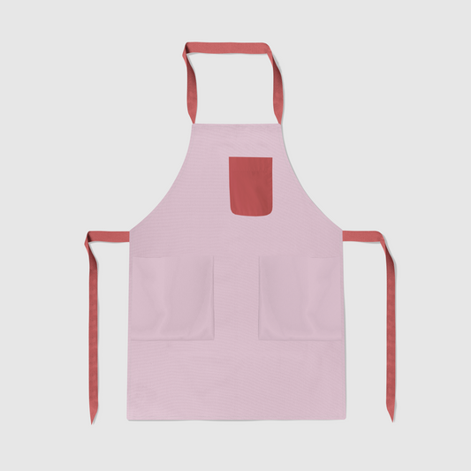 Solid Full Chef Apron in Blush with Red Pocket in Mid Weight Cotton Twill
