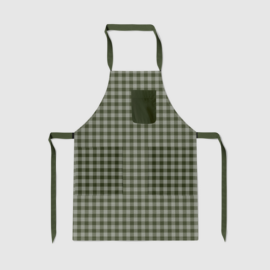 Mini Gingham Full Chef Apron in Olive Green in Mid Weight Cotton Twill