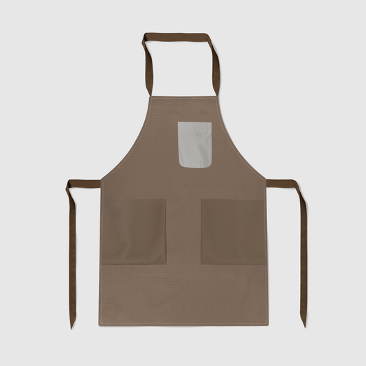 Solid Full Chef Apron in Dark Brown with Bone Pocket in Mid Weight Cotton Twill