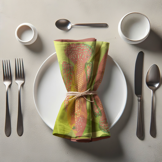 Spots and Dots Napkin - Lime Green in Lightweight Linen