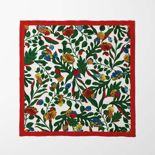 Tropical Spring Napkin in Teal in Lightweight Linen