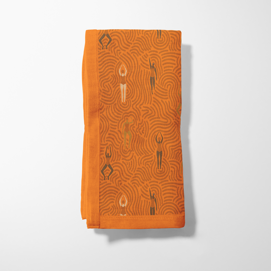 Swimmers in Summer in Figi Orange Napkin in Lightweight Linen