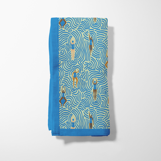 Swimmers in Summer Napkin in Cerulean Lime in Lightweight Linen