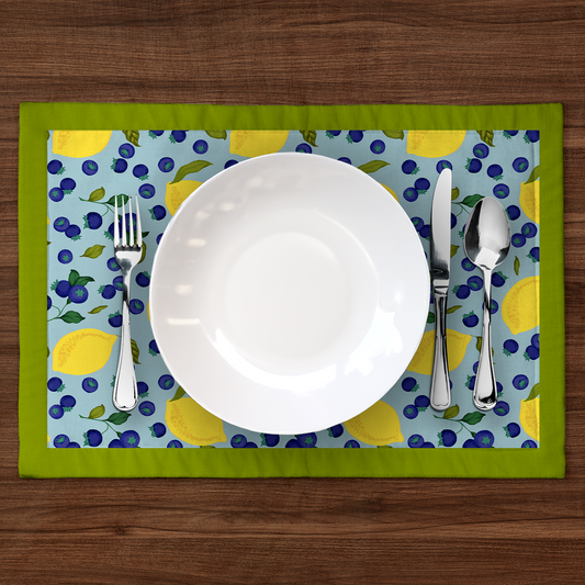 Spring Lemons in Aqua Placemat in Lightweight Linen