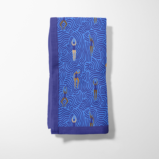 Swimmers in Summer in Blue Napkin in Lightweight Linen