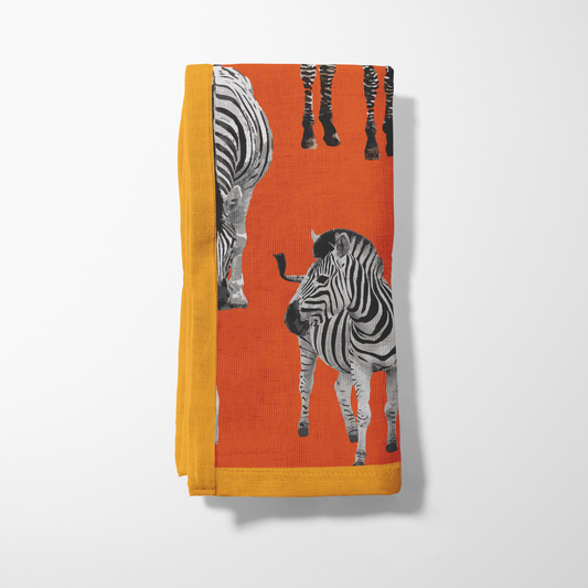 Tropical Paissage Cocktail Napkin in Blue Orange in Lightweight Linen