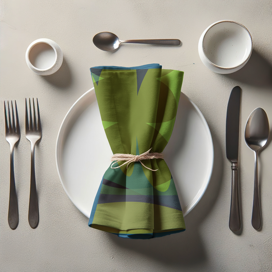 Big Shapes Napkin in Green and Blue in Lightweight Linen