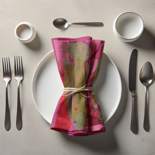 Branches + Dots Napkin in Pink in Lightweight Linen