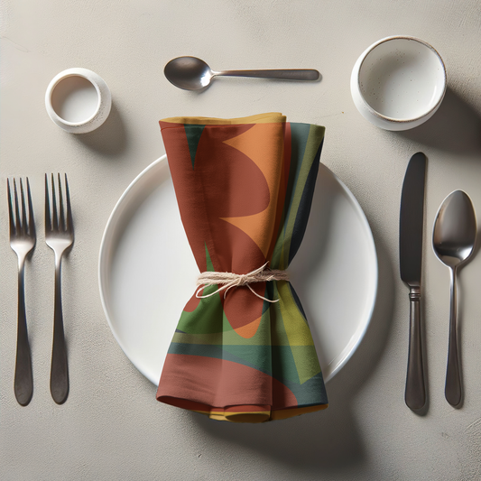 Retro Bloom Napkin in Orange in Lightweight Linen