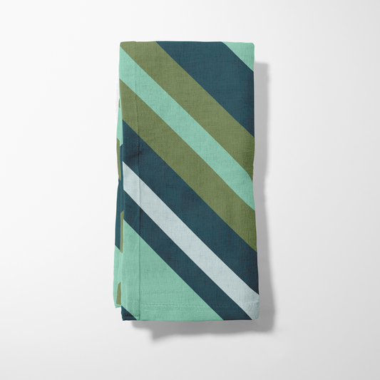 Stripe Parade Napkin in Navy Green in Lightweight Linen