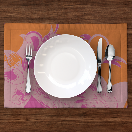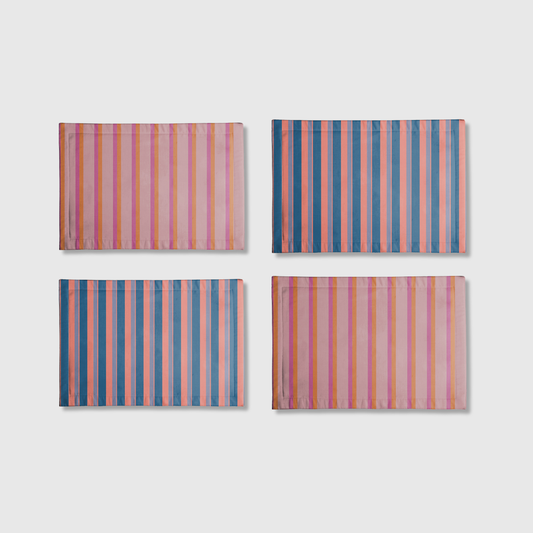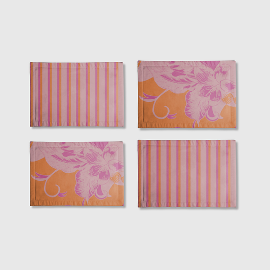 Tropical & Stripes Pink & Orange Placemats | Set of 4