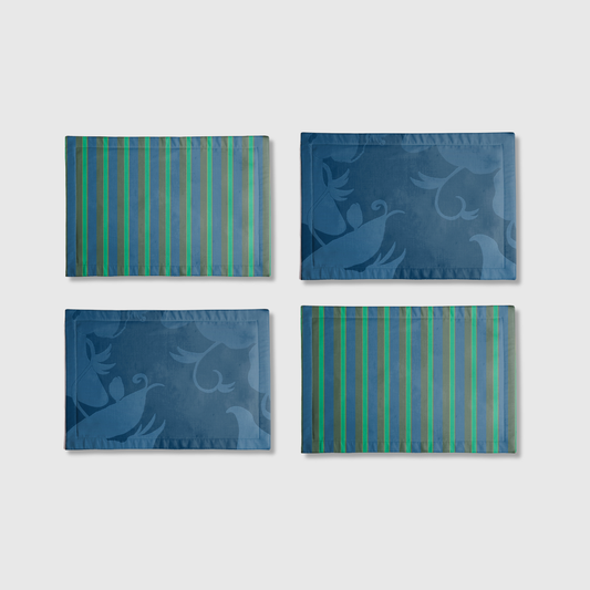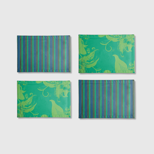 Tropical & Stripes Blue & Green Placemats | Set of 4