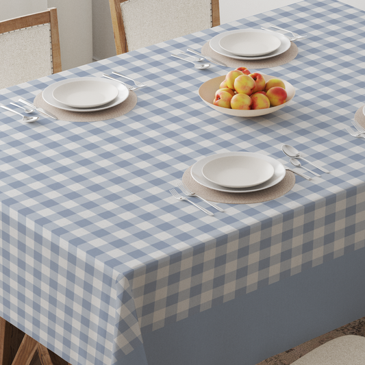 Mini Gingham Tablecloth in Pastel Blue - Mid Cotton Twill