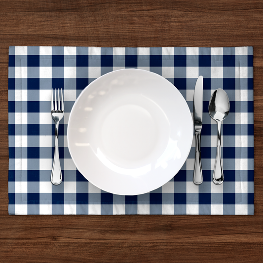 ONE Gingham Placemat in Navy in Mid Weight Cotton Twill