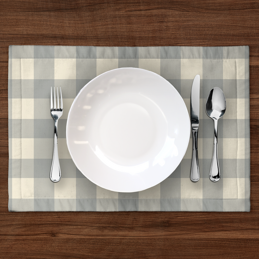 ONE Large Gingham Placemat - Pebble in Mid Cotton Twill