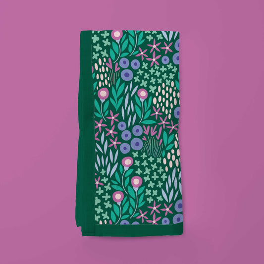 Drops Napkin in Green & Purple in Organic Cotton Voile
