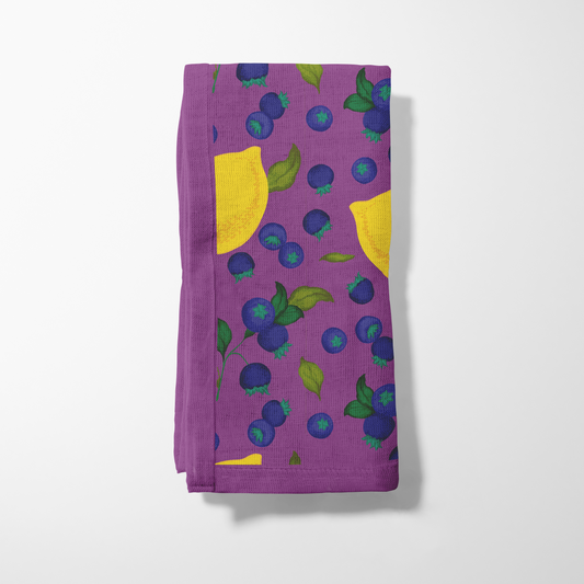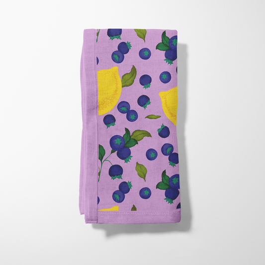 Spring Lemons Napkin in Purple in Organic Cotton Voile