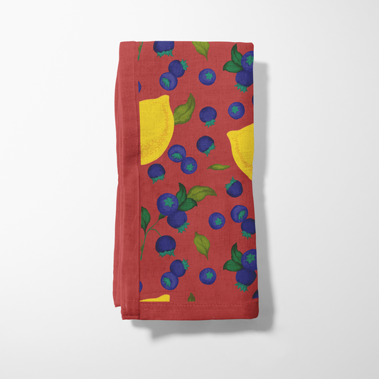 Spring Lemons Napkin in Red in Organic Cotton Voile