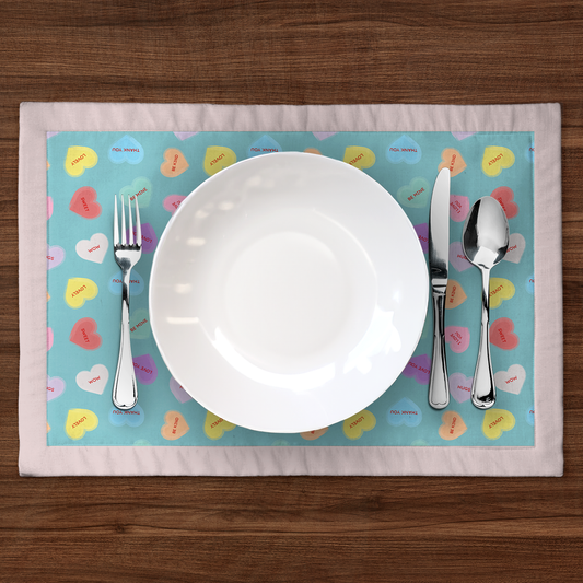 Valentine Pink Candy Hearts with Love Pink Placemat
