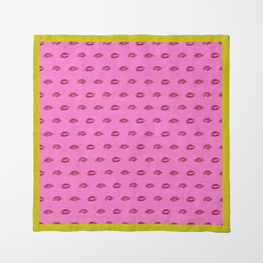 Love Pink Smooch Napkin with Laughter Yellow Border