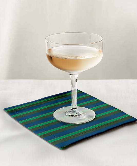 Candy Stripes Cocktail Napkin in Green in Lightweight Linen