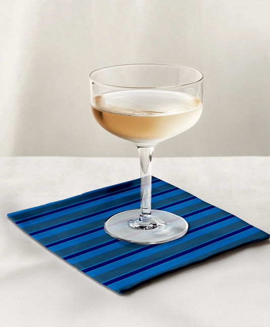 Candy Stripes Cocktail Napkin in Super Blue in Lightweight Linen