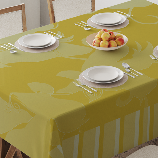 Tropical Paissage Tablecloth in Yellow in Mid Cotton Twill