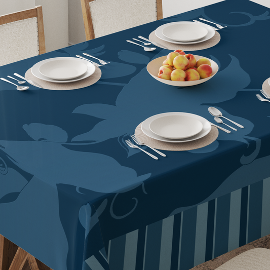 Tropical Paissage Tablecloth in Dark Blue in Mid Cotton Twill