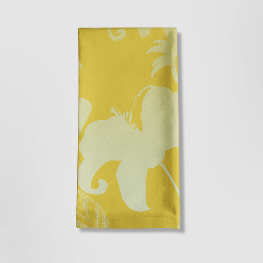 Tropical Paissage Tea Towel Yellow in Mid Weight Cotton Twill